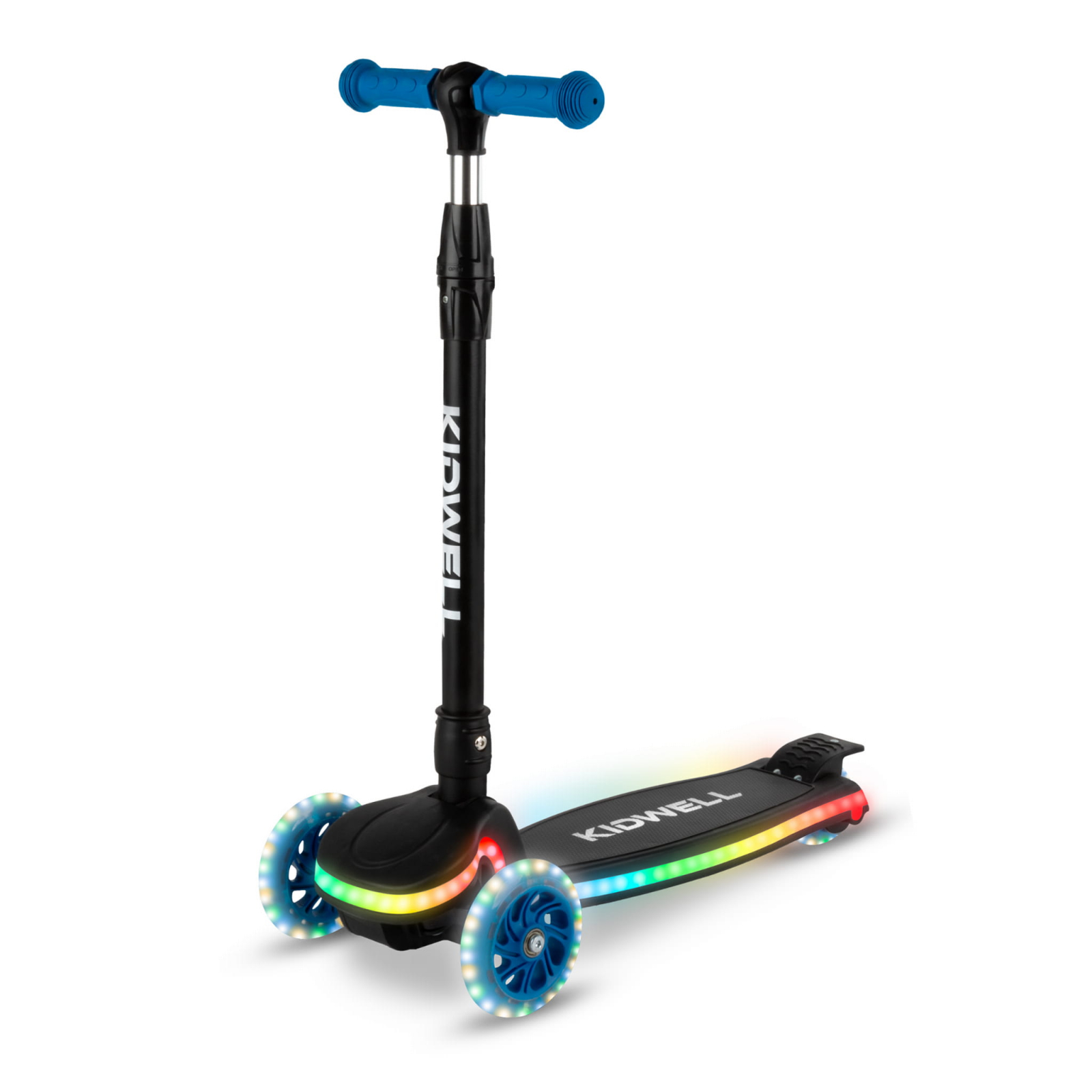 Trotineta LUMO Blue Balance , Aventura colorata si distractie in siguranta! Descopera trotineta de echilibru Kidwell Lumo , creata pentru micii aventurieri care iubesc miscarea si culoarea! Cu roti luminoase si platforma LED , fiecare plimbare devine un spectacol de lumini si zambete. Trotineta Lumo incurajeaza echilibrul natural al corpului si dezvolta abilitatile motorii , oferind in acelasi timp stabilitate si confort. Usoara, sigura si usor de manevrat, este alegerea perfecta pentru copii cu varste intre 3 si 8 ani . De ce sa alegi Kidwell Lumo Blue? Platforma si roti luminoase LED , joc de lumini colorate in timpul mersului Dezvolta echilibrul si coordonarea , sistem de directie intuitiv prin inclinarea corpului Constructie stabila si sigura , platforma antiderapanta si frana eficienta pe roata din spate Moduri variabile de iluminare + functie de economisire a energiei Pliere rapida, fara unelte , gata de drum in cateva secunde Ghidon reglabil pe 3 nivele , creste odata cu copilul Greutate redusa (2,75 kg) , usor de transportat si manevrat Specificatii tehnice: Marca: Kidwell Model: Lumo Blue Materiale: aluminiu (ghidon), plastic rezistent (platforma), roti din PU cu LED Dimensiuni roti: fata 12 cm, spate 8 cm Greutate: 2,75 kg Greutate maxima suportata: 50 kg Inaltimea copilului: 95, 130 cm Varsta recomandata: 3+ ani Alimentare LED: 3 baterii AA (neincluse) Standard de siguranta: EN 71 Producator: DERFORM sp. z o.o., Polonia Siguranta si distractie garantate! Trotineta Lumo Blue este ideala pentru plimbari in parc, curte sau pe alei sigure. Pentru protectie completa, recomandam purtarea castii si a echipamentului de protectie . Copilul tau se va bucura de libertate, culoare si miscare , tu te vei bucura de liniste si siguranta.