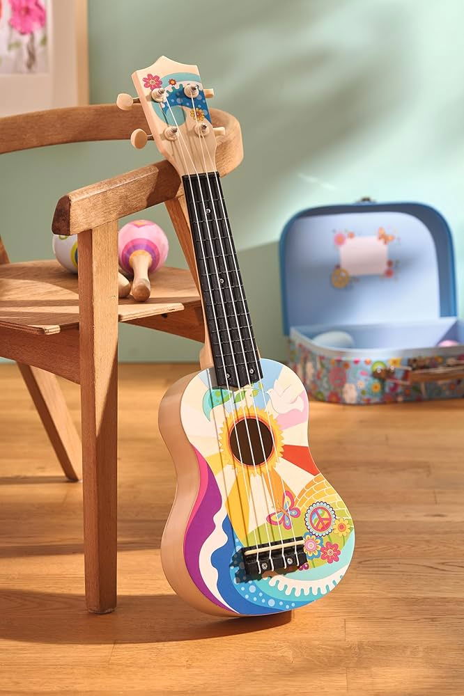 • Ukulele copii flower power , primul instrument muzical pentru copii