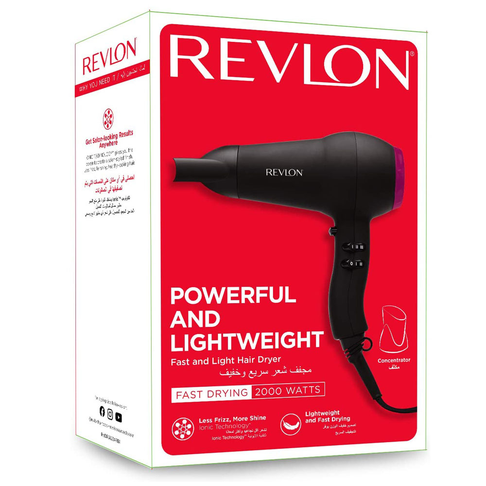 Uscator de par REVLON Fast and Light RVDR5823E3, 2 viteze, 3 trepte de temperatura Caracteristici: - Putere 2000W - Tehnologie de ionizare - Termostat pentru supraincalzire - Maner ergonomic - 3 trepte temperatura aer cald si buton de aer rece - Concentrator pentru uscare fina - Inel de agatare Uscatorul REVLON fast and Light este un dispozitiv profesionist cu o putere de 2000W, care va asigura o uscare rapida, iar varful ceramic ionizat pastreaza hidratarea naturala a parului si ii ofera stralucire. CAPAC DETASABIL Dispozitivul este proiectat cu un capac de inchidere a ventilatiei pentru a preveni patrunderea scamelor. Scoateti capacul periodic si curatati daca este nevoie, insa doar atunci cand aparatul este deconectat. BUTOANE DE TEMPERATURA VITEZA Aparatul are 2 viteze, 3 trepte de temperatura de aer cald si un buton de aer rece. Setarile de viteza si temperaturi ridicate sunt ideale pentru uscarea rapida sau uscarea inainte de coafare. Setarile de viteza si temperaturi scazute sunt ideale pentru coafare. Odata ce ati obtinut coafura dorita, apasati butonul de aer rece pentru a fixa coafura cu un jet de aer rece. INEL DE AGATARE Uscatorul este prevazut cu un inel care permite agatarea acestuia pe un carlig pentru a fi la indemana atunci cand aveti nevoie de el. CONCENTRATOR Concentratorul orienteaza jetul de aer pentru o uscare fina si usor de controlat. Inainte de a atasa concentratorul, folositi aparatul fara acest capat pentru a indeparta excesul de umezeala. SPECIFICATII TEHNICE: Tip utilizare: Uz casnic Destinat pentru: Uscare Material invelis: Ceramica; Plastic Functii: Ionizare, Aer rece Tehnologie: Ionica Alimentare: La retea Tensiune alimentare: 240 V Putere: 2000 W Trepte de temperatura: 3 Trepte de viteza: 2 Lungime: 27.5 cm Greutate: 500 g Culoare: Negru,