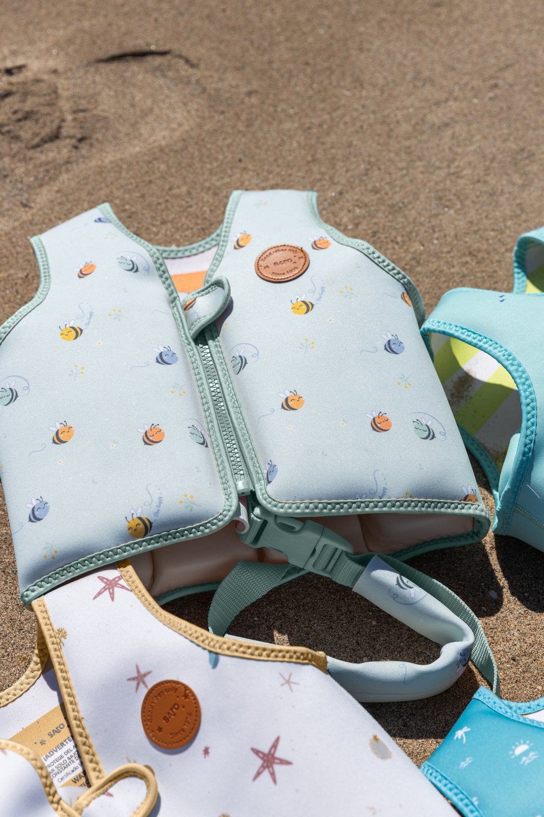 Siguranta, confort si distractie in apa Vesta de salvare Saro este accesoriul perfect pentru ca micutul tau sa invete sa inoate confortabil si in deplina siguranta. O combinatie ideala de protectie, versatilitate si design prietenos, creata special pentru cei mici. Caracteristici unice care fac diferenta: Sistem evolutiv de flotatie 8 compartimente cu cate 3 piese de flotatie in fiecare (24 piese in total) Piesele pot fi indepartate treptat, permitand adaptarea perfecta pe masura ce abilitatile de inot se imbunatatesc Avantaj exclusiv: Alte veste au doar 8 piese de flotatie, ceea ce face ca adaptarea sa fie mai brusca si mai dificila Protectie superioara Doua piese fixe frontale special concepute pentru a mentine caile respiratorii departe de apa Protectie UV UPF 50+ care protejeaza pielea delicata a copilului in timpul jocului in soare Materiale fabricate din surse reciclate , prietenoase cu mediul inconjurator Confort si siguranta maxima Curea reglabila intre picioare cu inchidere dubla de siguranta Previne alunecarea vestei peste cap in timpul scufundarilor sau al jocului in apa Protectie din neopren care elimina frecarea si iritatiile la nivelul picioarelor Material moale si placut la atingere pentru confort extins Bucura-te de apa ca un adult! Fa din experienta la piscina sau la plaja un moment de neuitat pentru copilul tau. Cu vesta de inot Saro, ofera-i siguranta, libertate si incredere in explorarea minunata a lumii acvatice! Dimensiune Varsta Greutate Conturul pieptului S. 1 - 3 ani 9 - 18 kg 51 - 56 cm M. 3 - 6 ani 18 - 30 kg 56 - 61 cm Dupa utilizare, clatiti cu apa proaspata si lasati sa se usuce la aer, evitand expunerea directa la lumina soarelui. Nu folositi inalbitor, uscator de rufe sau fier de calcat. Conform cu EN13138-1:2022.