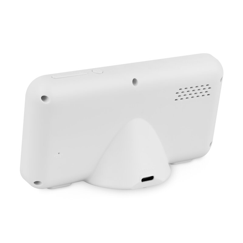 Setul include cabluri si adaptoare de alimentare pentru camera si receptor, permitand pozitionarea flexibila. Suportul flexibil si husa din silicon cu design jucaus se integreaza armonios in camera copilului.