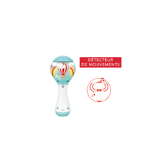 Lumina se aprinde pe ritmul muzicii si isi schimba culoarea cand jucaria se misca.