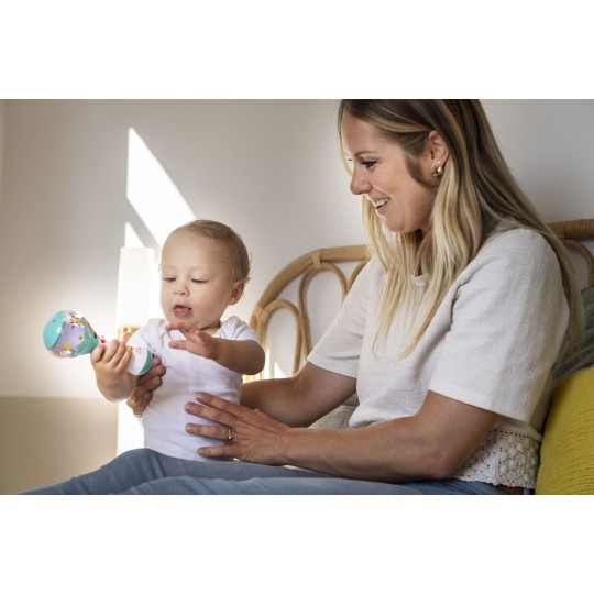 Datorita formei, bebelusul poate sa o tina usor in manute si este perfecta pentru descoperirea relatiei dintre cauza si efect.